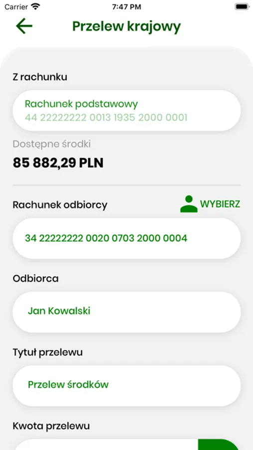 - wyświetlanie szczegółów każdej autoryzowanej operacji (m.in. kwoty operacji, danych odbiorcy przelewu),