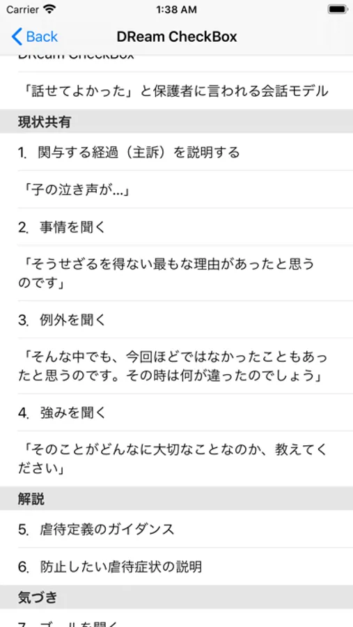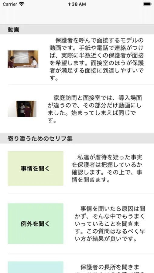 子の安全を守りながら虐待状態を解決し、保護者や関係機関と子育てのパートナーになるためのプロトコルがこのアプリに詰まっています。