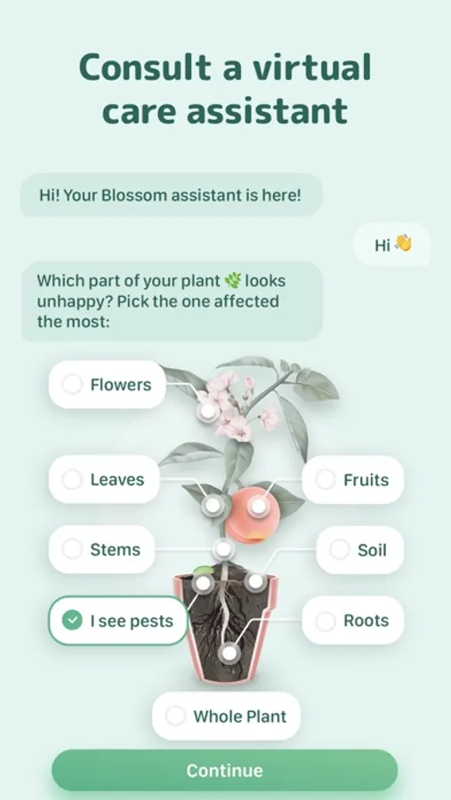 Consult with our chatbot, the Blossom Assistant, to identify your plant's problems and get your green buddies thriving again.