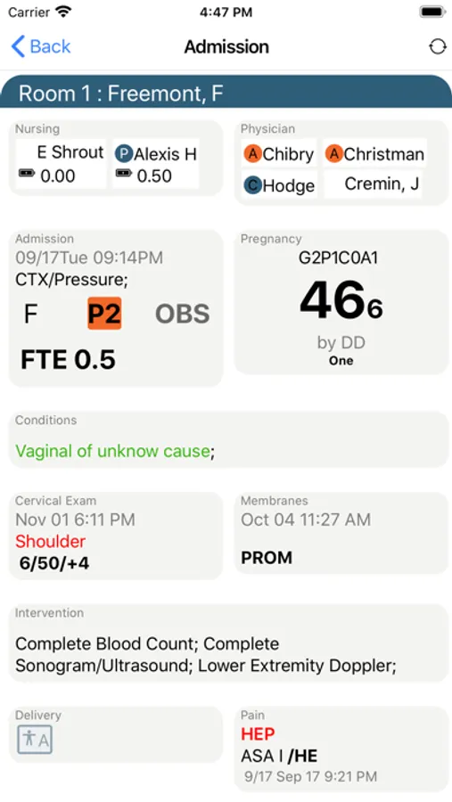 This application will work along hBoard for Labor & Delivery units that controls the progress of a labor and delivery including nursing, physicians and anesthesiologists assigned to each patient or to the entire unit and will also control clinical data during the admission up to the neonate delivery, including cervical exam, partogram, membranes, pain scale, gestational age, parity and gravidity, notes, file attachments and all medical data for healthcare providers to provide a excellent patient care. The main application will be hanging on a wall of the Labor & Delivery Unit and the users will use their mobile devices to interact with the main application.