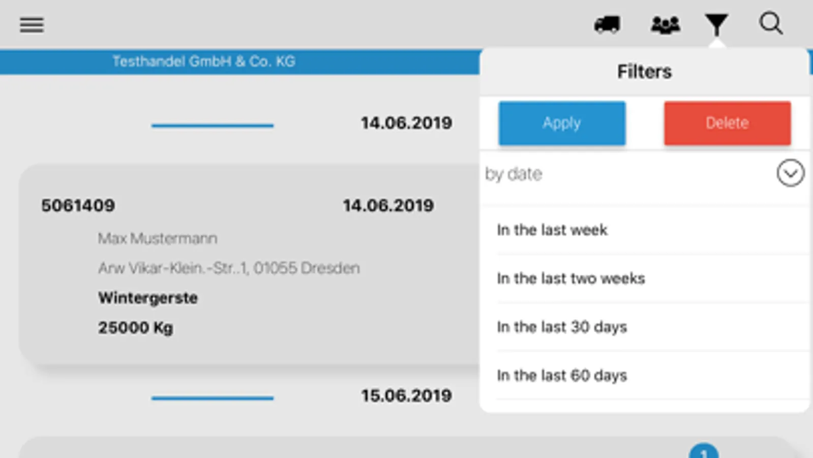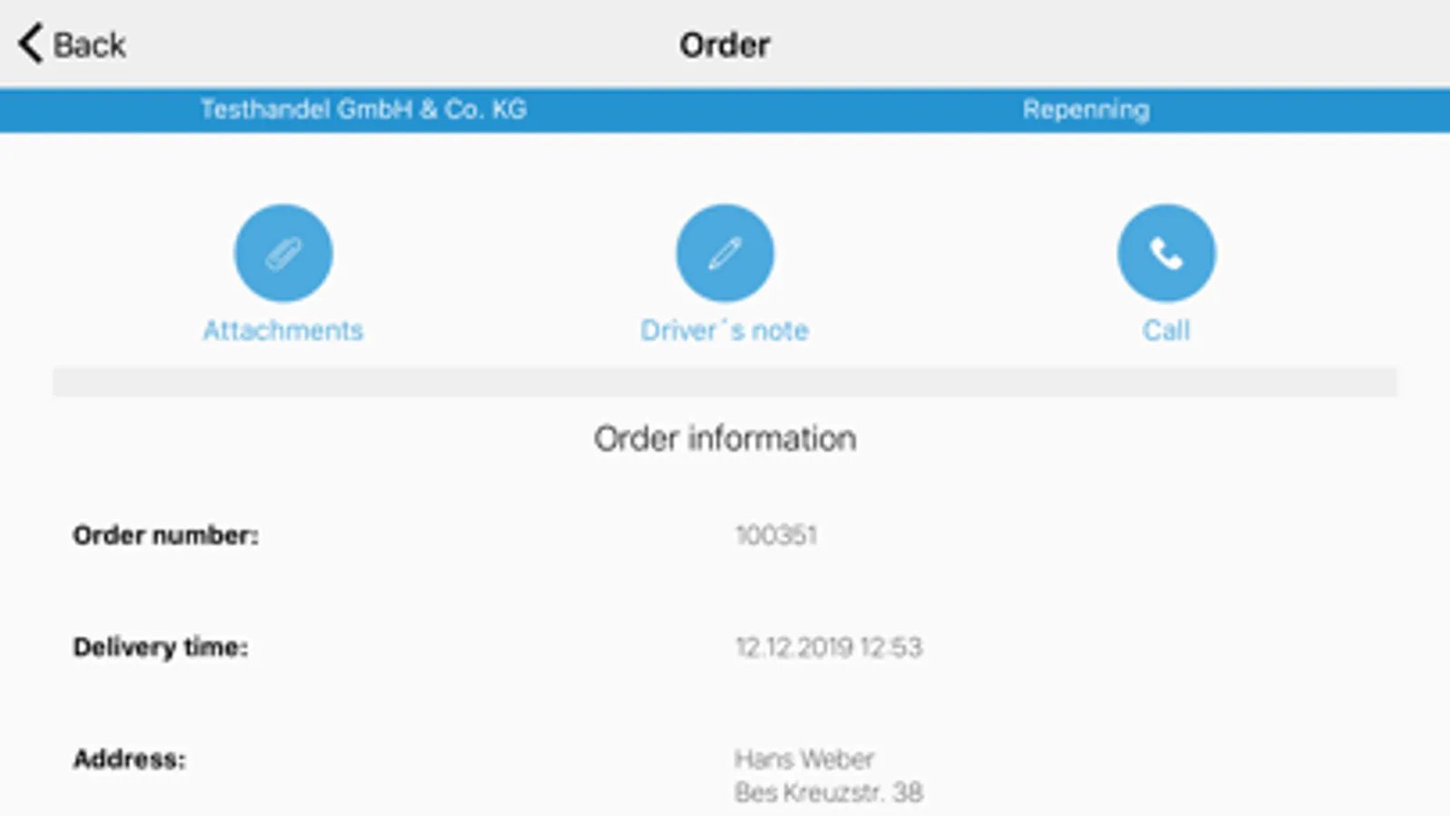 Information such as the delivery address of the customers, order items, navigation, entry of the delivered quantity and much more is clearly laid out in the app and ready for retrieval. Due to immediate synchronisation with tacoss.eTRADE, logistics departments have an optimal overview of the goods deliveries to the customers.