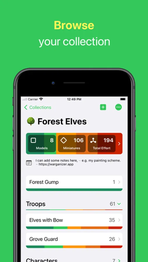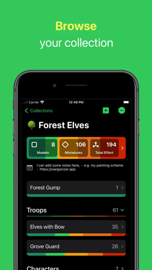 - Add notes to your collections and models (e.g. to remember your painting scheme).