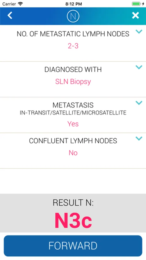By simply selecting items from a drop-down menu, set according to the criteria of the AJCC tables, MelApp also allows you to identify the three T-N-M parameters.