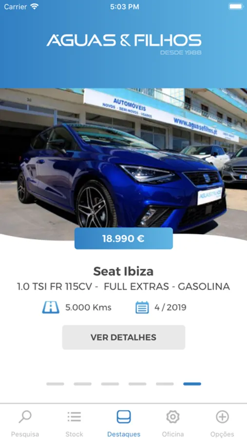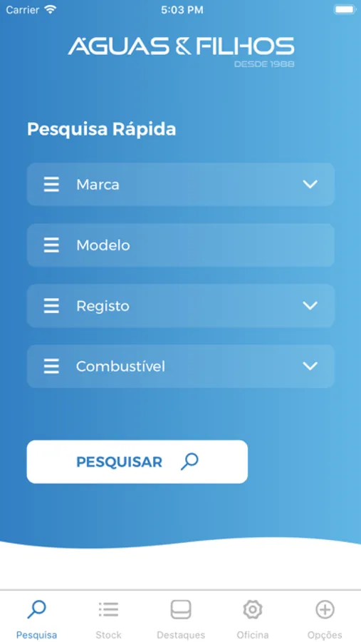 Com a aplicação Águas & Filhos pode consultar as viaturas disponíveis, adicionando bastantes funcionalidades úteis ao utilizador.