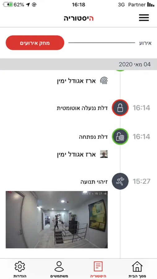 - צפה מי פתח את הדלת באמצעות סריקת אצבע במסך ההיסטוריה.