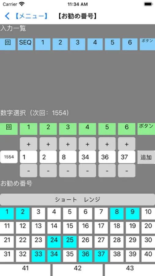 ショートレンジは10個程度、ワイドレンジは20個程度の番号を提示します。