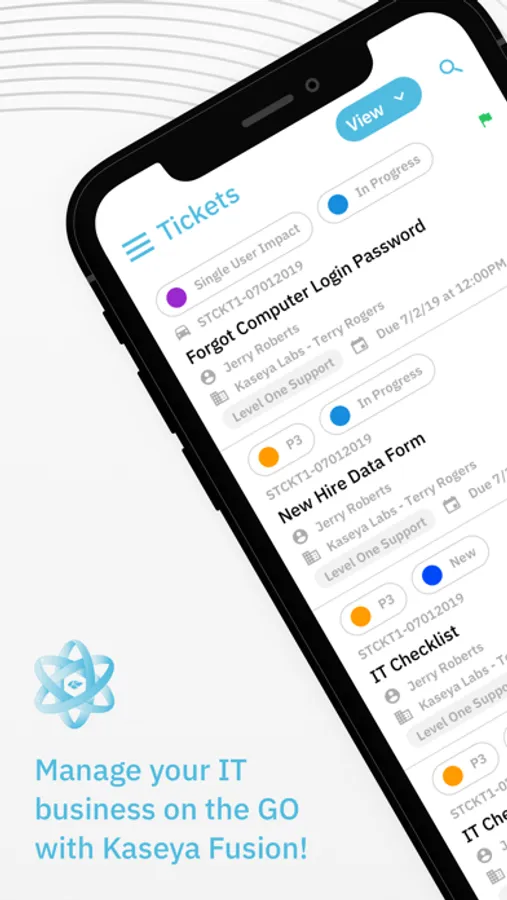 Manage common IT tasks on your mobile device and get real time visibility into your IT environment. This mobile app gives technicians the workflows they need between Kaseya VSA and Kaseya BMS to get IT done, faster, on the go. Manage and resolve service tickets quickly from your mobile device with access to IT asset information in the palm of your hand. This application is for those who have Kaseya VSA or Kaseya BMS, or both!
