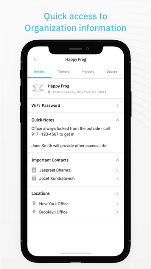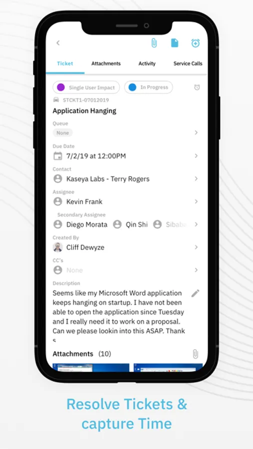With BMS, create, view, assign, search, and update service tickets. You can capture notes, time entries and attachments such as photos all on your mobile device. If you have a service call associated with a ticket, you can find those tickets and see all details, such as this ticket requires a technician to go offsite which is great for both dispatchers and technicians. For IT Managers, get real time visibility into the IT environment by seeing ticket assignments, resolutions, critical tickets.