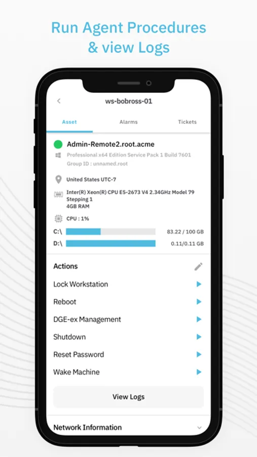 Kaseya VSA integrated with BMS tickets on your mobile device, enables technicians on the move to quickly access asset and agent information on tickets. See the status of the agent and see what endpoints are online and offline, all while seeing the latest audit information about endpoints.