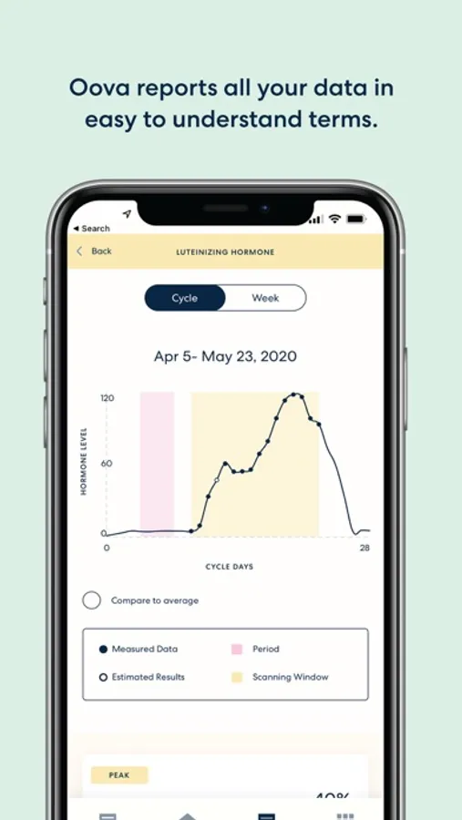 Based on your unique data, Oova provides personalized daily action plans to let you know what to do next to get closer to reaching your goals. At the end of a cycle, you receive a report that showcases your hormone trends and details about the phases of your cycle.