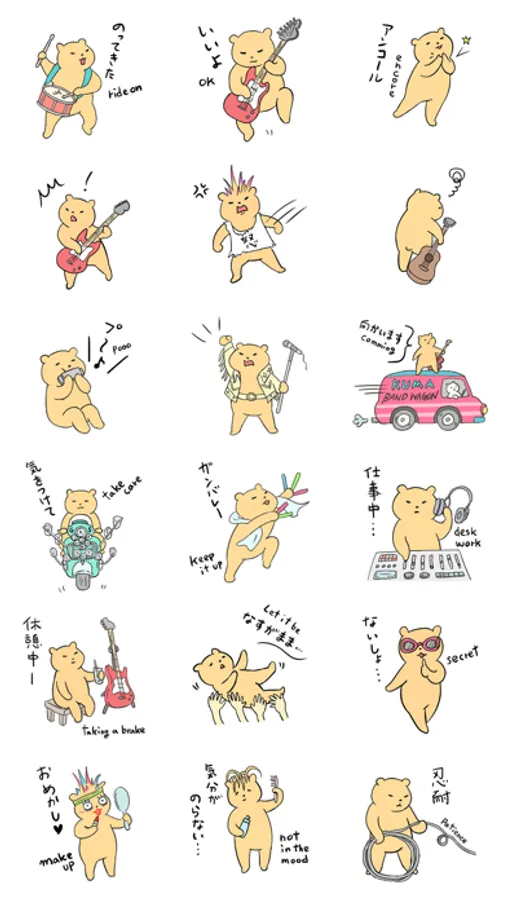 Very cute 3rd version Kuma (Cute Bear) stickers have come. Total 34 types cute stickers Whatever your feeling is blue or happy, Kuma stickers will always be by your side. Let's rock'n roll!