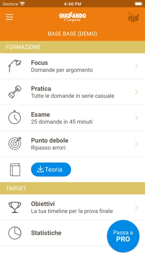 La versione Demo, gratuita, contiene un numero limitato di quiz e serve per prendere confidenza con lo strumento.