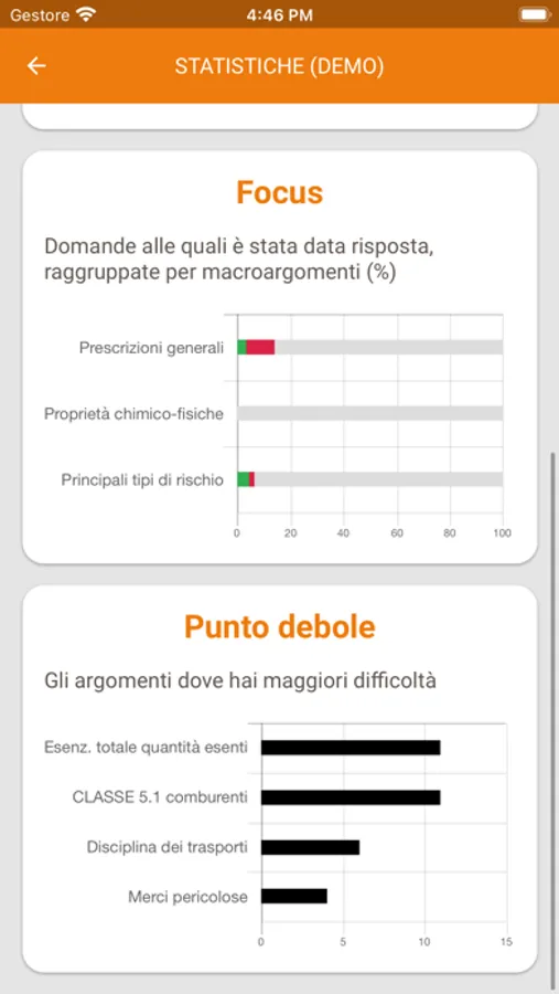 - Punto Debole: sono le domande che hai sbagliato, e che ti vengono riproposte per un ripasso degli errori