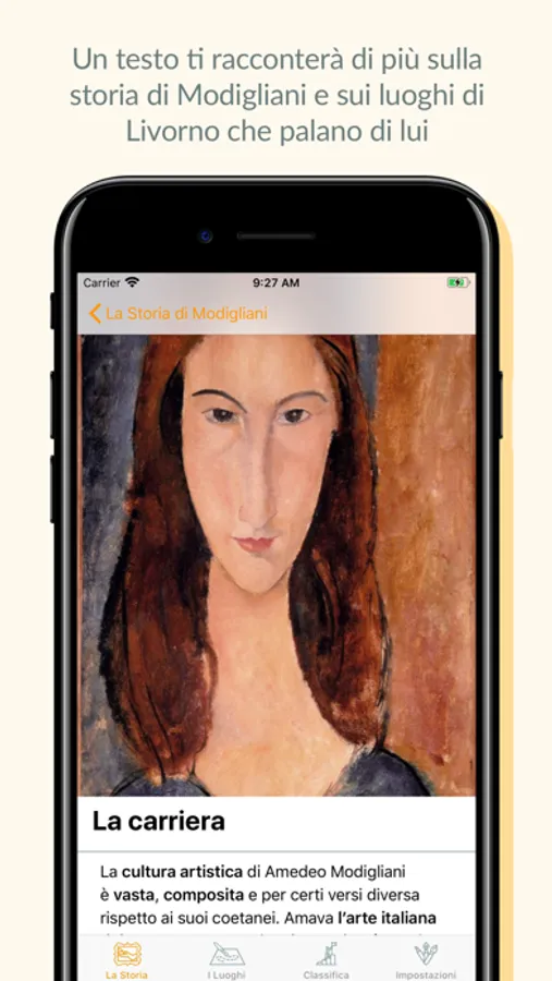 The Modigliani Livorno App lets you get to know Amedeo Modigliani and his hometown, Livorno, interactively and engagingly. Your smartphone will guide you to the places of Livorno that can tell you more about Modigliani, talking about people and episodes that have been fundamental in his life.