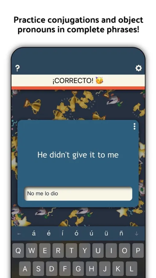 Practicing conjugation on an app should be more than typing out endless isolated verbs. It should make sense! It should also be more realistic, dynamic, and more effective. We're here to help make that happen.