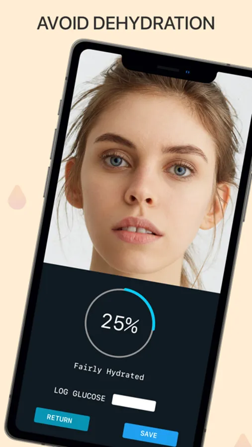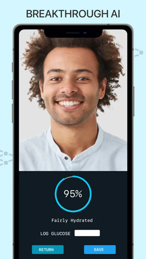 AI running on device estimates hydration levels. The user takes a selfie. Face skin analysis estimates user’s hydration. Running on the Neural Engine on-device chip, it's lightning fast, providing the user results in a blink. Our algorithm is unique and achieves a high degree of accuracy. We are not going to stop here. We want to improve it and make it even better. We are hoping our users will provide feedback on the results to help us improve our AI to better serve users and our community.