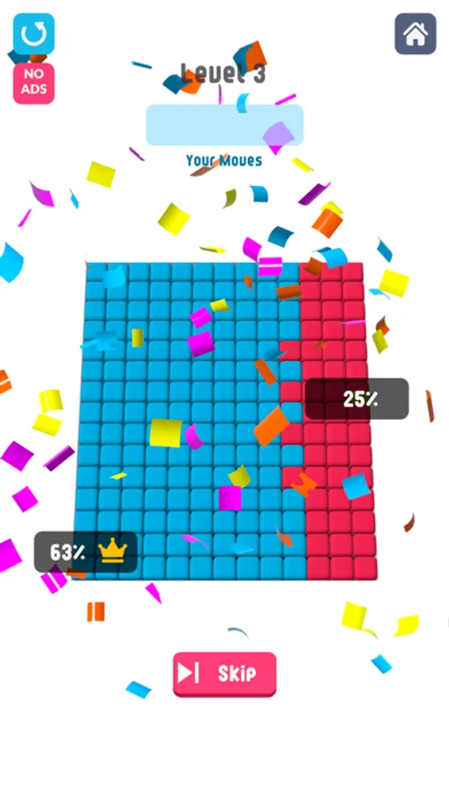 To succeed at this game you need to choose the ideal position on the board to place your blocks so your colours win out and grab the most board space. If you get the majority you win!