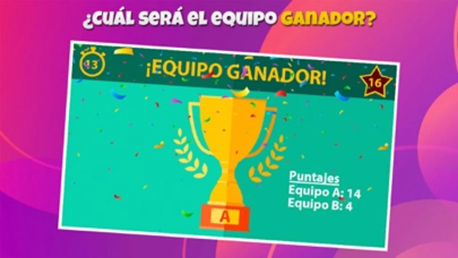 Para empezar deben formar 2 equipos, equipo A y B, pueden elegir entre 3, 5 y 7 rondas de juego. Cada grupo dispone de 60 segundos para adivinar la mayor cantidad de personajes.