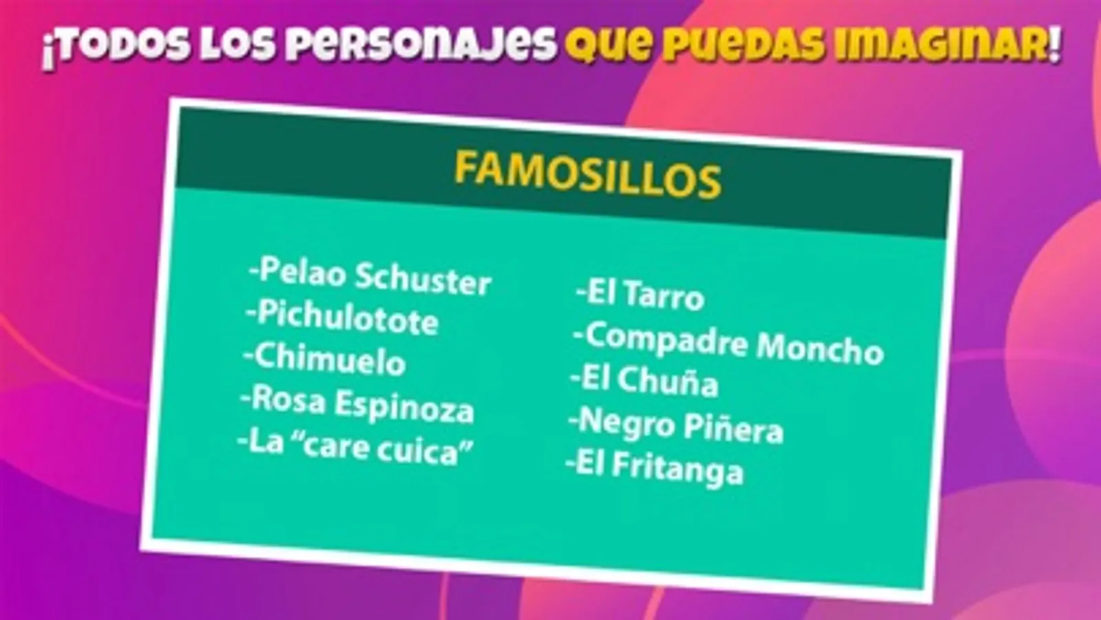 Este juego de adivinanzas, charadas, mímicas muy entretenido con personajes de la cultura popular de Chile en donde junto a tus amigos y familiares podrás divertirte por horas, ya sea en fiestas, cumpleaños, baby showers, juntas con amigos, compañeros de curso, etc.