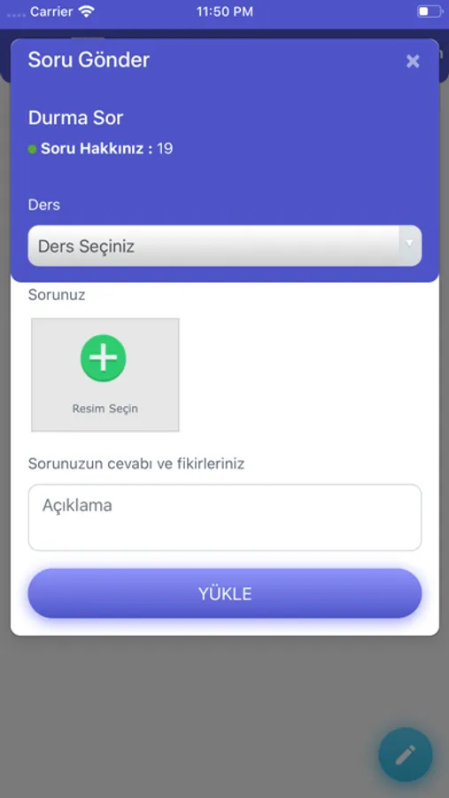 Durma Sor tüm derslerde çözemediğiniz soruları öğretmenlerimize gönderebilmeniz için tasarlanmış bir uygulamadır.