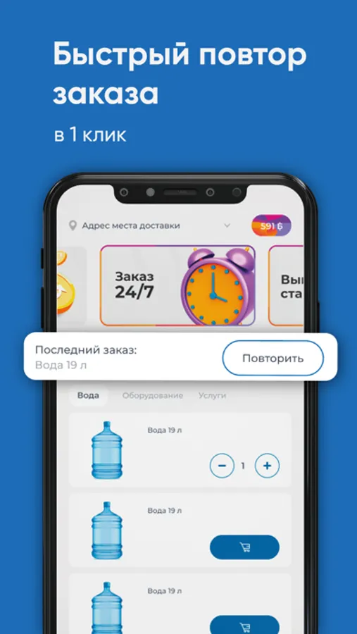 Скачайте бесплатное приложение на телефон и заказывайте чистую воду в удобное время!