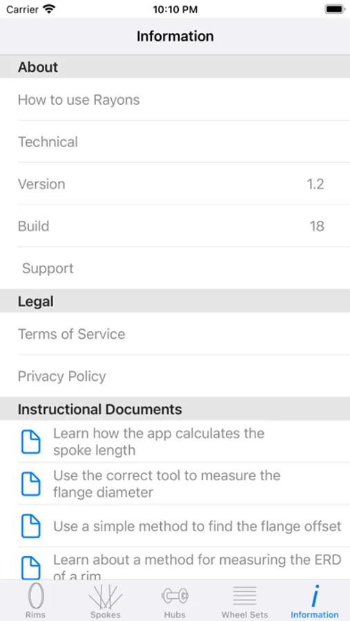 Rayons (spokes in French) accurately calculates the proper spoke length given a set of measurements that you provide. Hub and rim manufacturers may provide the measurements or you can measure them yourself. Detailed instructions are provided in the app.