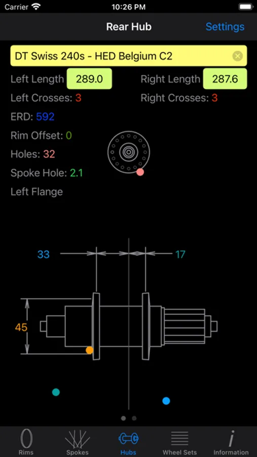 The app uses simple and accurate controls to input your measurements. The spoke length for your wheel set is displayed in real-time.