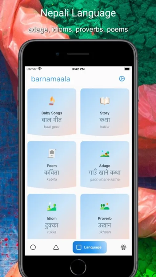 * Learn major colors(रंगहरु), animals (जनावरहरु), birds (चराहरु), plants (बिरुवाहरु र फुलहरु), flowers (फुलहरु), Nepali food (खानेकुरा) and vegetables (तरकारीहरु) in Nepali Language.