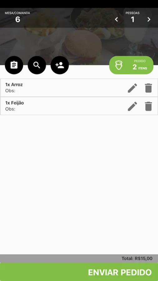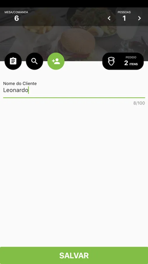 - Informe quantas pessoas estão consumindo na mesa