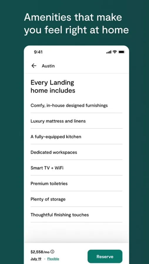 Break free from the restrictions of traditional renting. You never need to worry about putting down a deposit or paying application fees. With Landing, your reservation works for you.