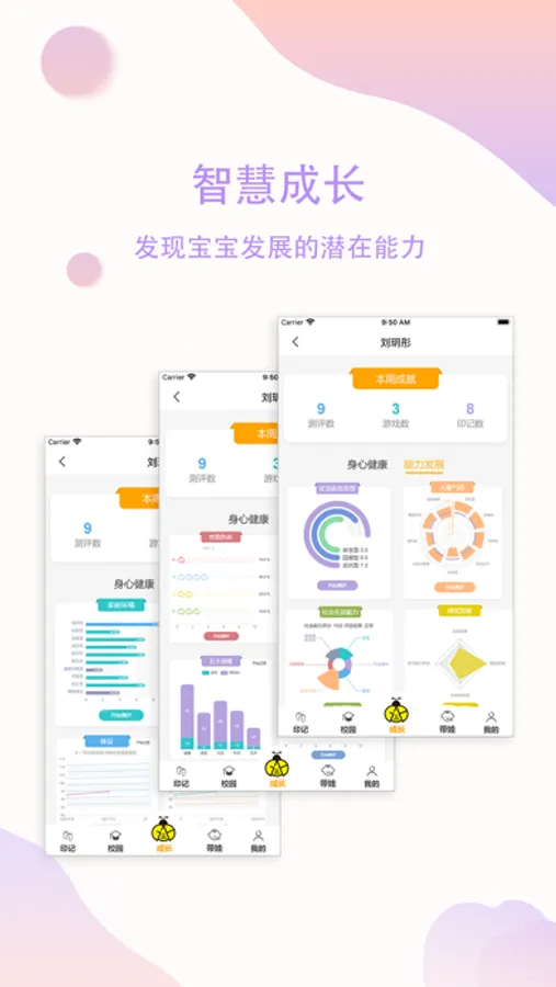 【成长】360度评估宝宝身心发育和能力状态我们将各维度权威量表和文献深度融合,帮助家长了解自家宝宝成长环境及发展状态,定期测评形成阶段报告,指导家长精准照料;