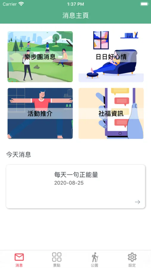 「樂步同行」公園健步團:n透過本手機程式,在黃大仙區內三個公園進行健步運動,讓長者養成健步習慣,與不同年齡層人士進行互動,促進彼此連繫,有益身心。每團不超過 12 人,以小組型式,讓參加者享受健步與運動的樂趣。