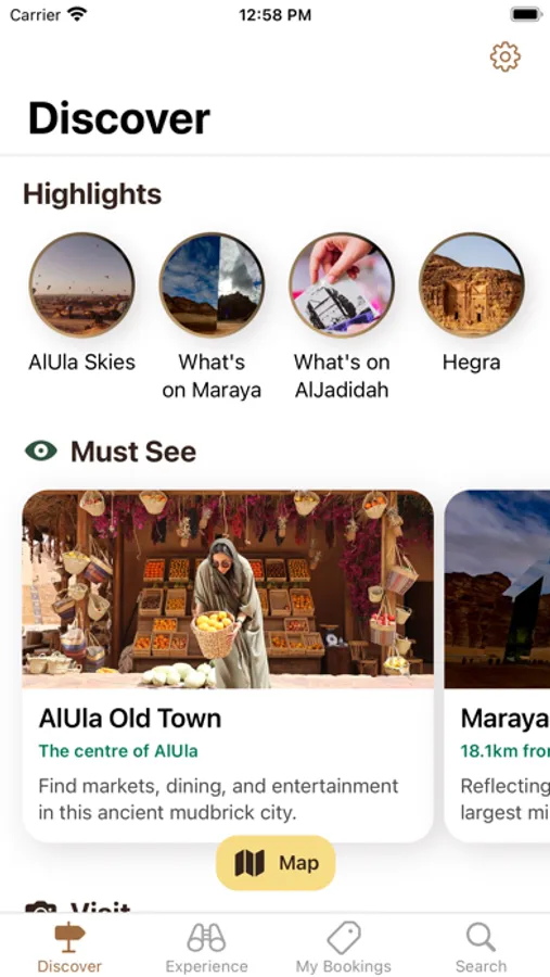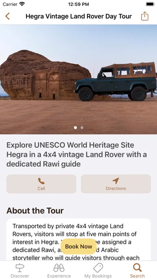 Using the Experience AlUla destination app in English or Arabic, you can: