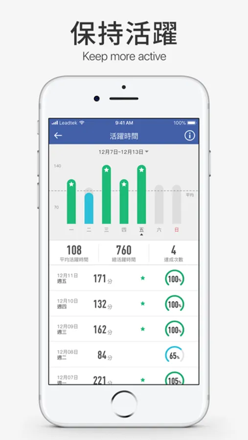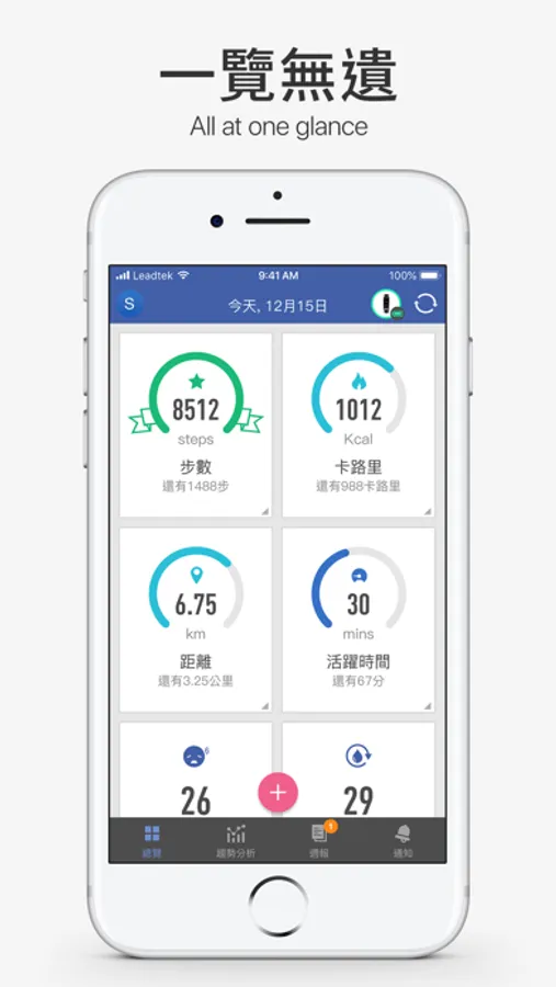*自動追蹤活動量,包含步數,距離,活躍時間及卡路里。