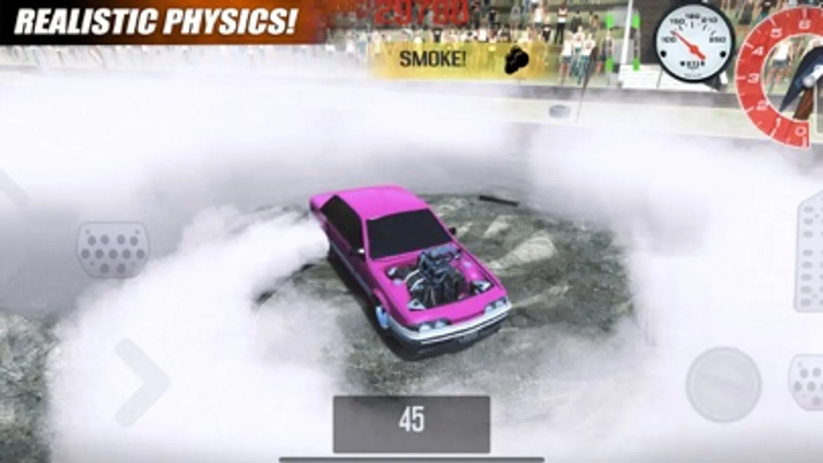 - Intense burnout physics with realistic smoke, engine explosions and popping tyres!