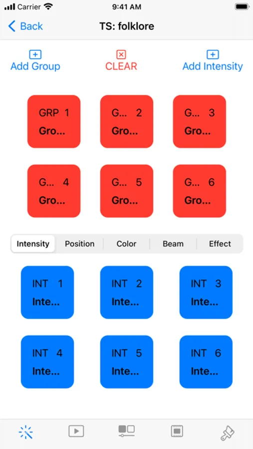 This is an OSC remote for Hog 4 consoles and Hog 4 PC. It allows you to quickly put fixtures into palettes and groups and clear the programmer or knockout the last selected group. You also have playback options like going lists and scenes and releasing lists and scenes.