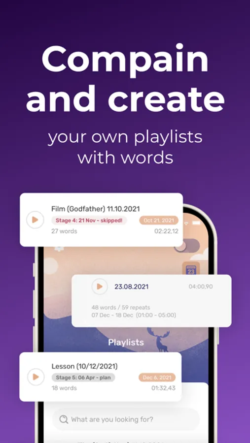 Words and phrases can be assembled into playlists that are suitable exactly for your purposes.