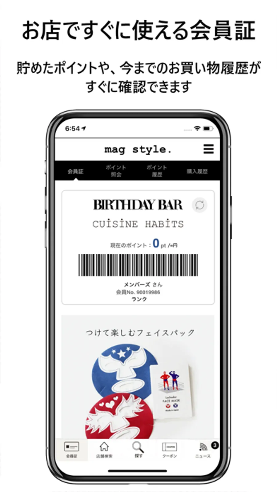 ・会員証バーコード(店頭でご購入の際にレジでご提示ください)