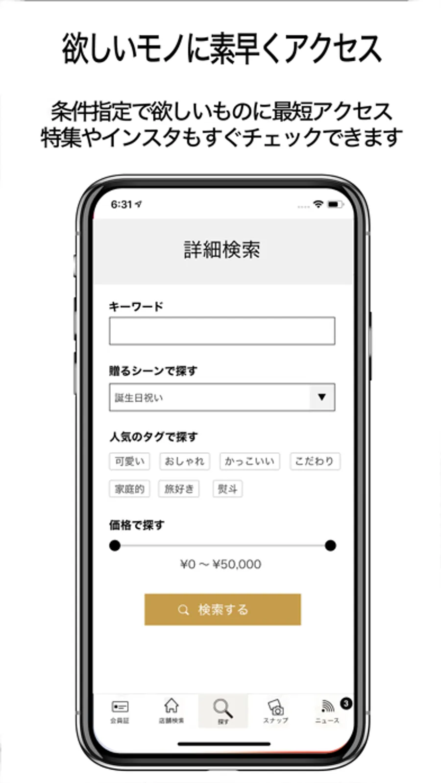 気になるアイテムを価格やカテゴリー、タグなどで簡単に検索できます。