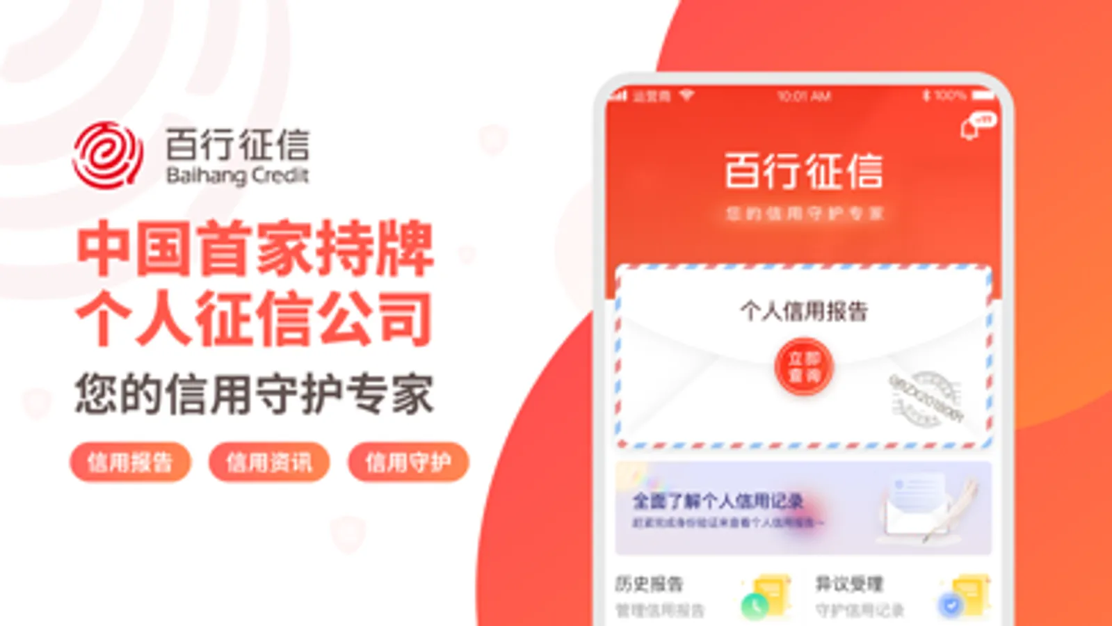 百行征信有限公司是中国第一家、也是目前唯一一家获得个人征信业务经营许可的市场化公司。在中国人民银行监管指导下,百行征信专注于征信、信用评估、信用评级、数据库管理等业务,是一家从事个人征信、企业征信及相关产业链开发的信用信息产品与服务供应商。