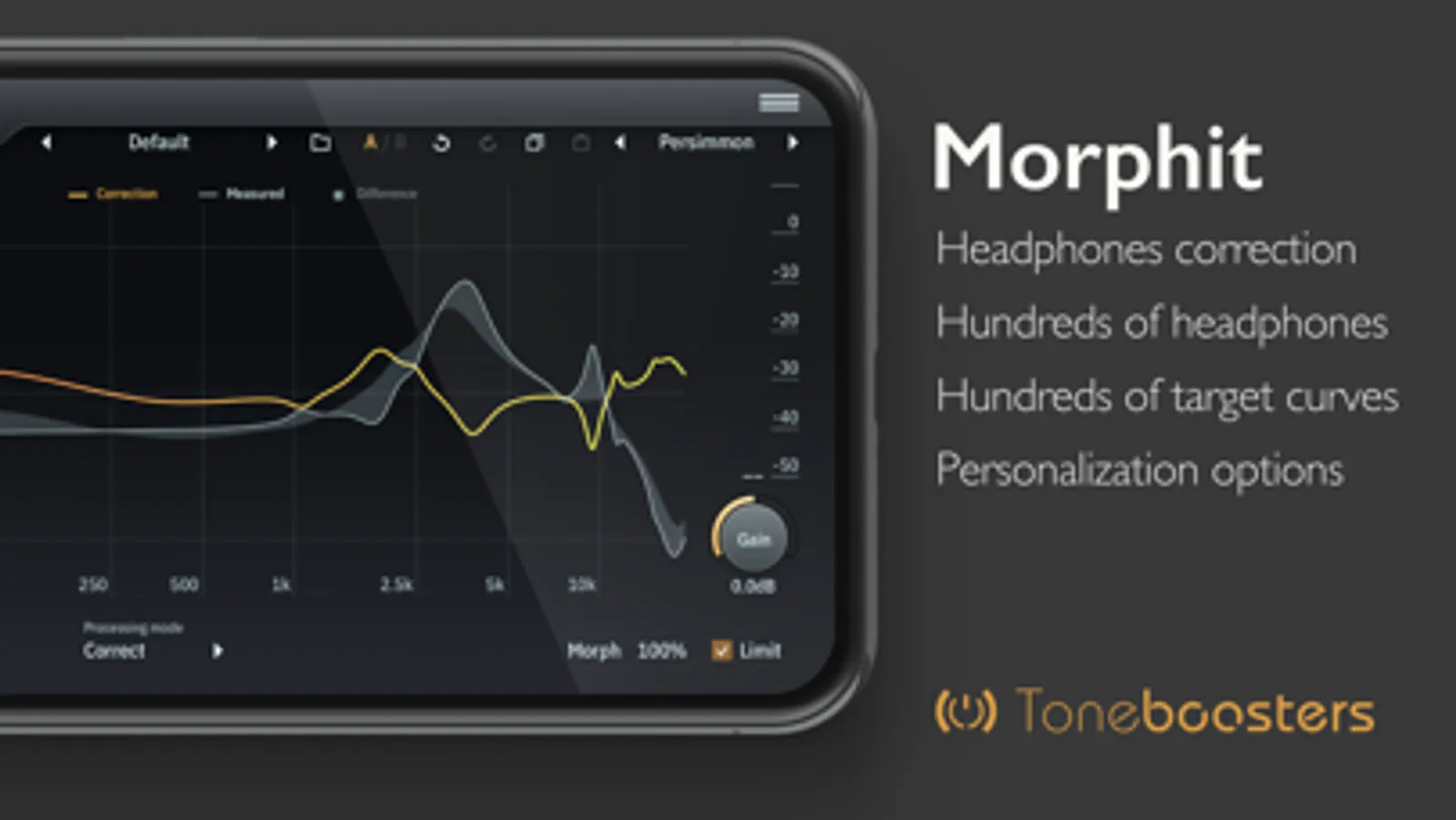 ToneBoosters Morphit is an AUv3 / IAA plugin for headphones correction and simulation and removes any unwanted coloration from your headphones!