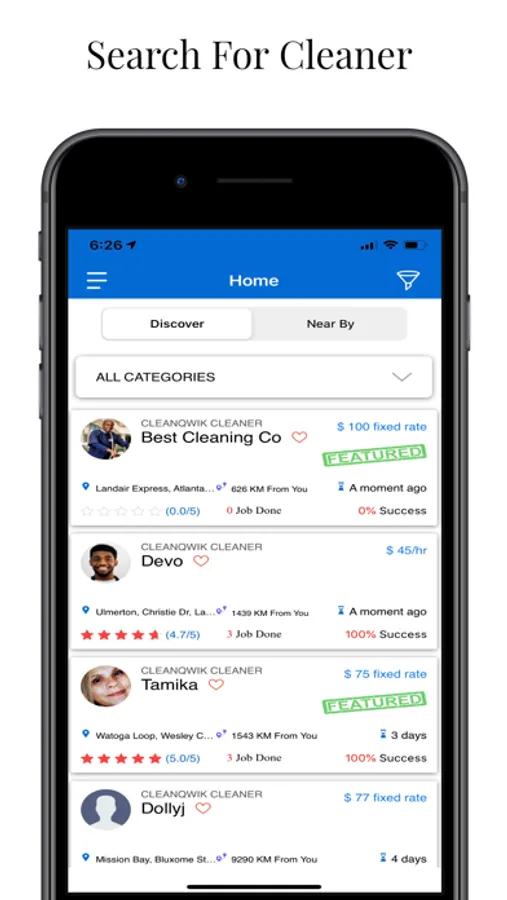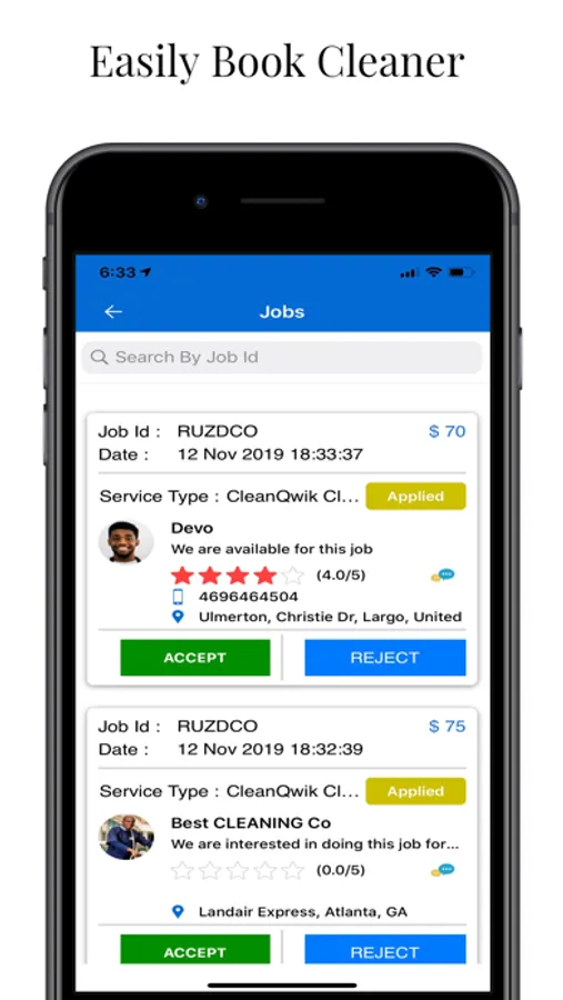 When you use CleanQwik, you’ll be able to pick and choose your cleaner by looking at their profile right in the app, manage your booking details, communicate with your cleaner, rate after each booking, and more mobile-only features. Try doing all of that with the phone number for the house cleaner you got from your neighbor’s friend.