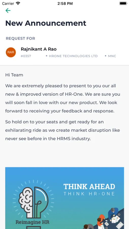 An intelligent HCM mobile app that enable employees to do all tasks on the go, simplifies human interactions and delivers actionable insights to build happy workplaces. Employee can perform all their inbox tasks, view payslip and letters, reward and recognise their peers or connect with team over chat.