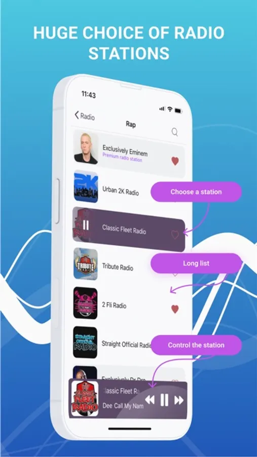 — Create your media library with just 1 button, adding stations to favorites