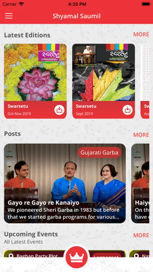 The App has various features such as our entire music collection segregated in various categories which you can hear at the touch of your finger, details about our upcoming and past events, the latest and previous editions of ‘Swarsetu Digest’-our publication dedicated to Gujarati Music Industry and posts on our various social media platforms.