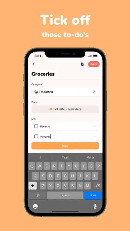 Let Eggy be the place to dump all your to-dos. Tick ‘em and flick 'em off your list and feel the pump of finally making some progress.