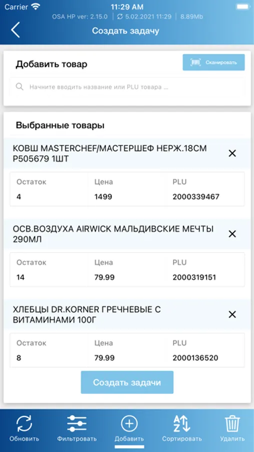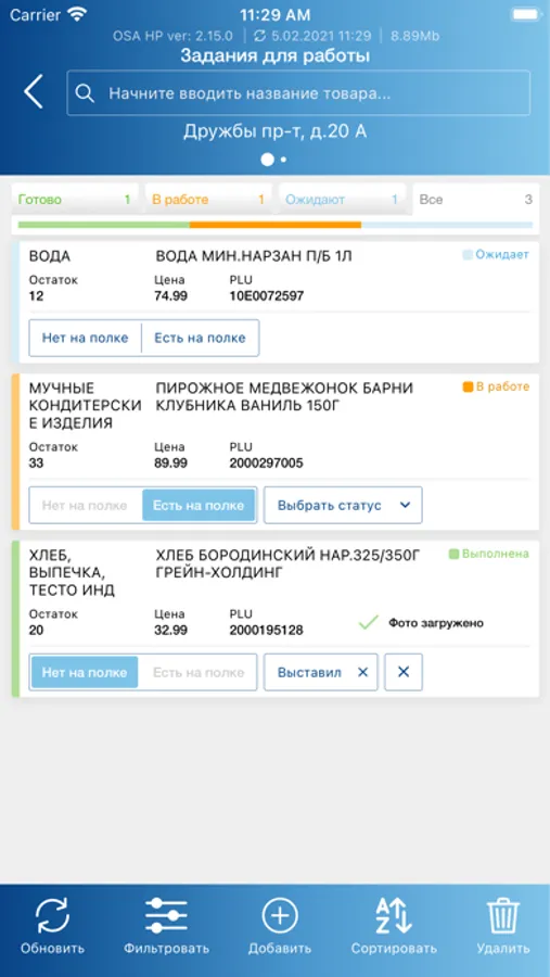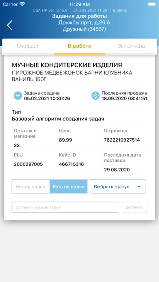 Приложение является мобильной реализацией web-сервиса компании OSA HP для мерчендайзеров сетевого ритейла.