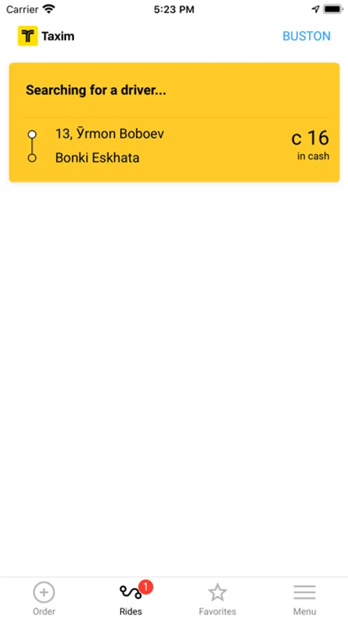 The app has an online map that displays nearby drivers who are ready to accept your order. When your order is accepted, you can track your driver's location on this map in real time. Use the in-app chat or call the driver to specify the pick-up address. At the end of the ride, tap the thumb-up/down button to give positive or negative feedback.