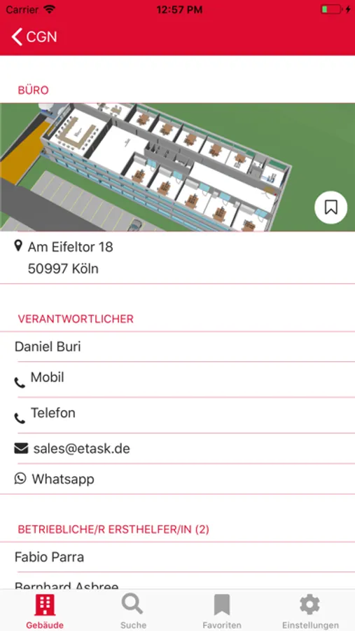 Die App Notrufliste ermöglicht es allen eTASK-Kunden mit einem Notrufliste-Zugang, Ihre HSE-Funktionen differenziert nach Standorten, Gebäuden und Funktionen darzustellen und zu kontaktieren.