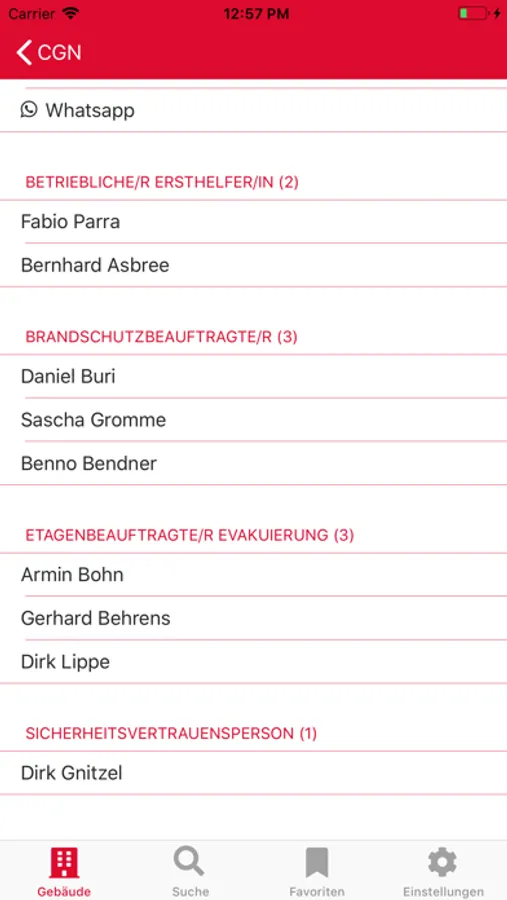 Kontaktieren Sie die benötigten Funktionen direkt aus der App per Telefon, Mail oder WhatsApp.